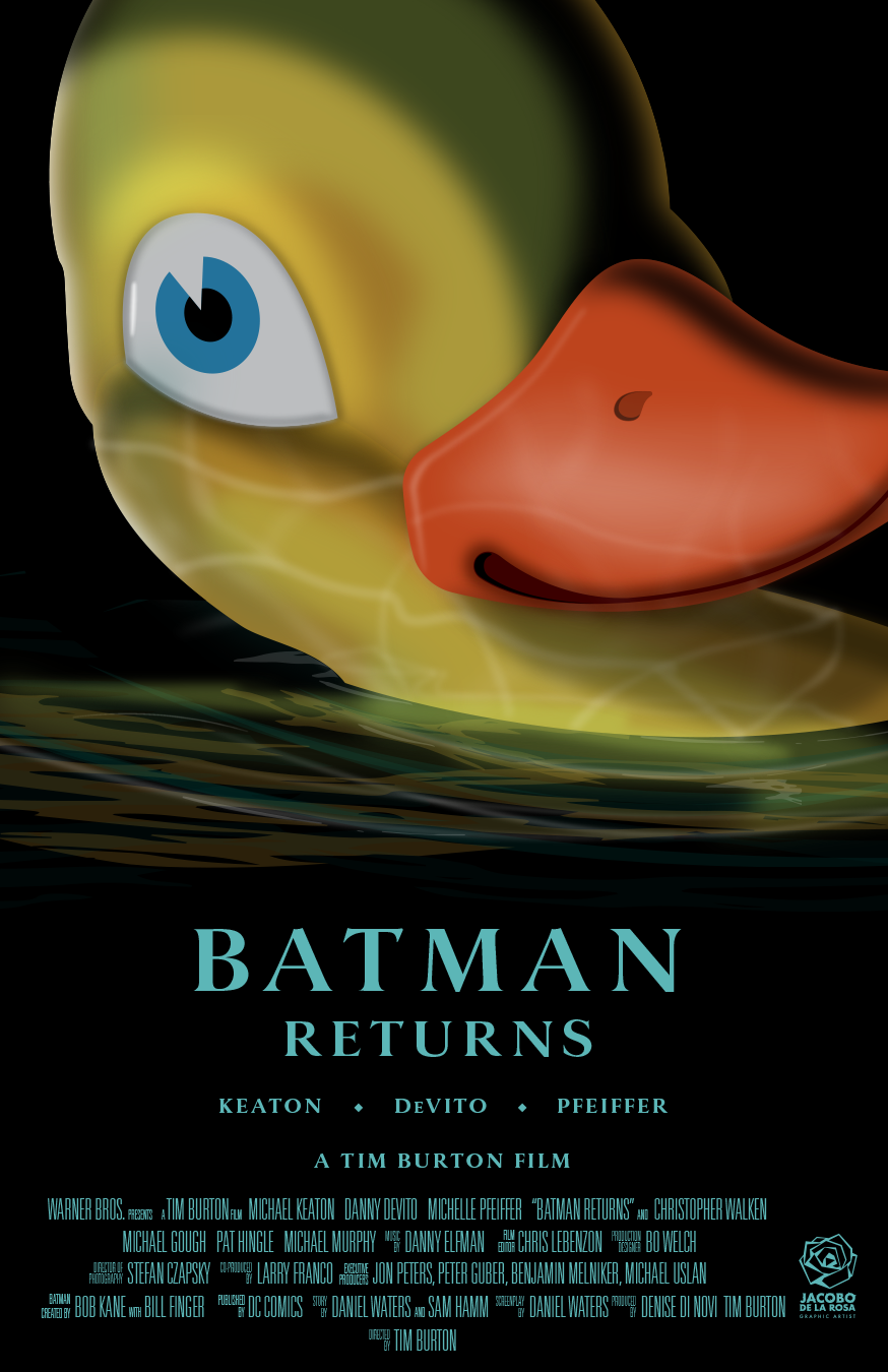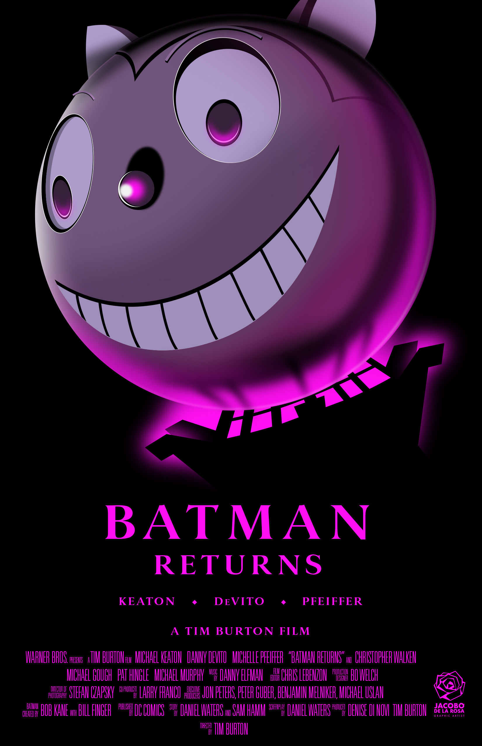 The poster series showcase Tim Burton's Batman 1989 and Batman Returns films. The idea was to create a series of alternative movie posters for the films without showing Batman. Instead objects that are closely related to the villains are displayed.