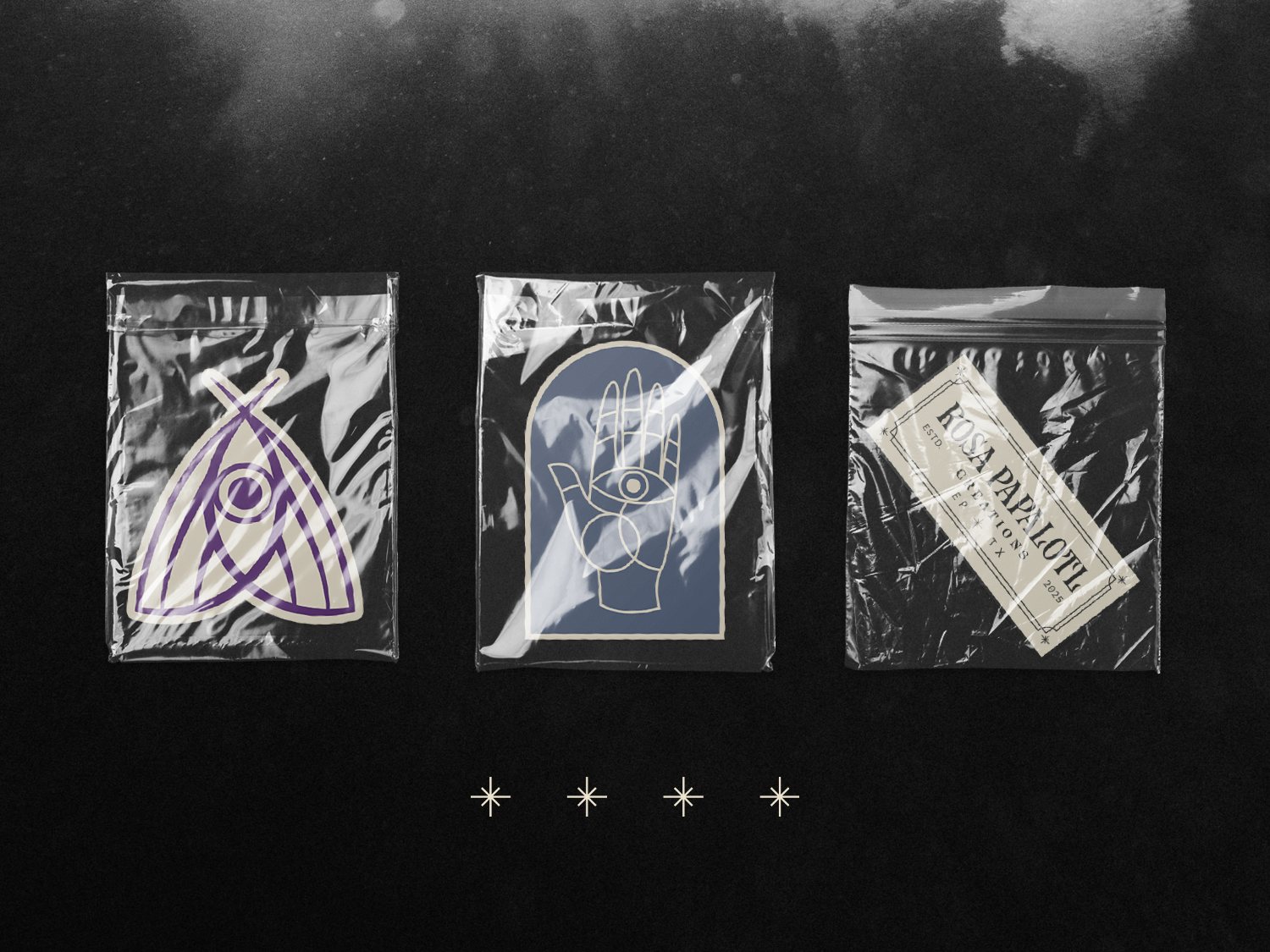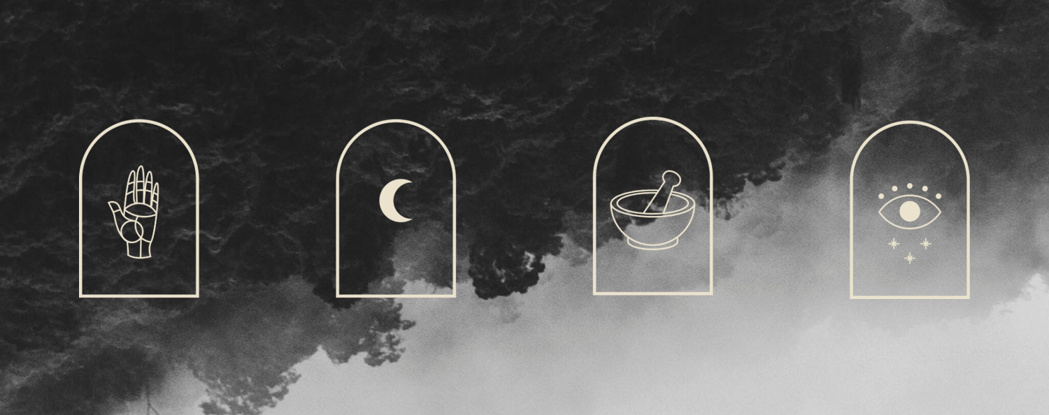 Papalotl is the Nahuatl word for 'butterfly'. The butterfly famously is a symbol for transformation. Hailing from the same order as the butterfly (Lepidoptera) the moth is a symbol for transformation, intuition, and a deep connection to the spiritual realm. The logo's esoteric icon combines a moth and a symbol for truth, and spiritual insight: an eye. The icon is paired with an earthy Victorian serif font. The overall style of the logo draws inspiration from tarot cards and Art Nouveau, which dictates the brand's mystical aesthetic. The brand system is supported by line art illustrations and minimalist assets.